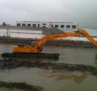 - 可在水深1米以內(nèi)的河道與海灘中作業(yè)。超過1米水深的作業(yè)環(huán)境,可根據(jù)客戶要求進行特別設(shè)計及制造。產(chǎn)品對特種作業(yè)環(huán)境的適應(yīng)能力,其他類型的挖掘機無法替代,被海內(nèi)外客戶譽為“水中挖掘之王”。
